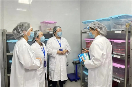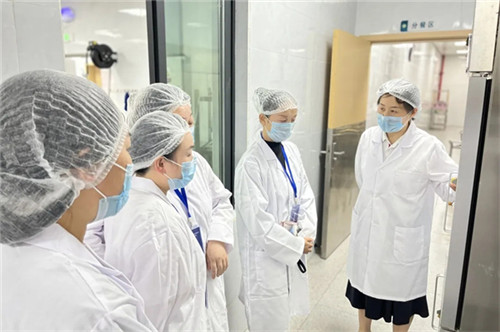 家长代表们在老师的引导下,严格遵循食品安全管理规范:佩戴一次性口罩与遮发帽、完成手部消毒,换上干净的专用卫生服后,有序踏入食堂操作区域。