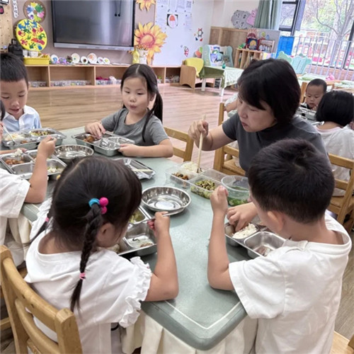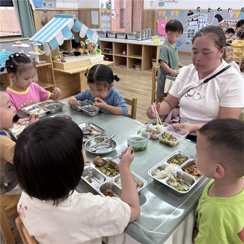 家委们走进班级随餐,亲身体验孩子午餐口味,并观摩幼儿完整的进餐流程。他们与孩子们一同围坐餐桌旁,品尝着幼儿园为孩子们精心准备的午餐。在进餐过程中,家长们不仅关注食物的口感和营养搭配,还仔细观察孩子们的进餐习惯,并与老师们进行深入地交流。通过这次随餐活动,家长们对幼儿园的餐饮有了更加直观的感受。
