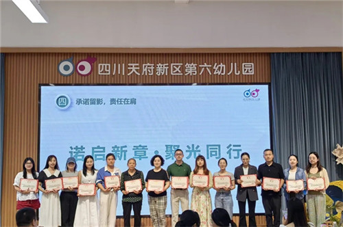 家委们现场签署《膳食监督家长委员会成员履职承诺书》,承诺将积极发挥监督作用。随后,后勤副园长苏蓉向家委会颁发聘书并合影。