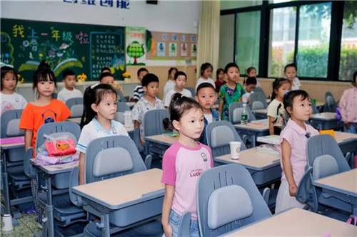 “开学啦!”伴随着清脆的问候,一年级新生的小学第一课正式开启。他们学着挺直小身板,用甜甜的声音跟老师、同学说“早上好”;站上小小的讲台,勇敢介绍自己的名字和爱好;在轻松的互动里,认识了身边的新伙伴,原本陌生的小脸蛋,渐渐露出了熟悉的笑容,校园里的友谊种子从此开始生根发芽。