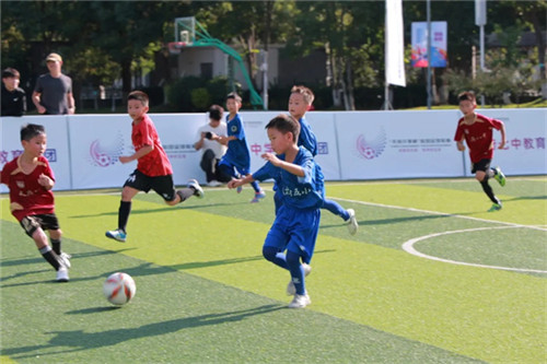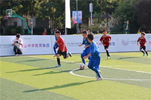 当成都市足协副主席邹侑根开出第一球,揭幕战正式打响——东道主四川天府新区第五小学二年级队,迎战天府八中小学部二年级队。
