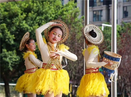 五年级8班的同学们用智慧将舞蹈《希望的田野》与朗诵《稻田里的中国梦》精彩融合。舞者以灵动舞姿模拟稻浪起伏、农夫耕耘,朗读者则以深情语调诉说稻田里的强国梦,舞韵诗声交织,在校园舞台上绘就一幅“以耕耘筑梦,以丰收强国”的动人图景。