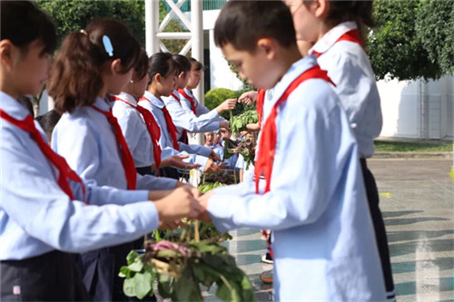 在赠送秋种仪式上,大队干部将承载着希望的秋种传递到同学们手中。每一粒种子是古人农耕智慧的结晶,每一粒种子都是农耕文化的传承载体,更是江安学子耕耘梦想的起点。