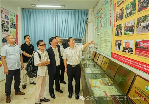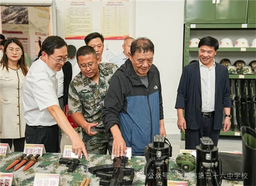 活动伊始,嘉宾与师生沿长征大道漫步校园,在国防展厅观摩武器装备模型,于校史馆追溯国防教育发展脉络,在国防教育教室翻阅特色课程资料,更实地考察校园党建示范带核心区域。该党建示范带串联起党员活动室、红色文化长廊、国防教育实践点等阵地,通过“党建+国防”融合展示,直观呈现学校以党建引领国防教育、以国防教育厚植红色基因的育人路径,嘉宾对这一创新举措给予高度认可。