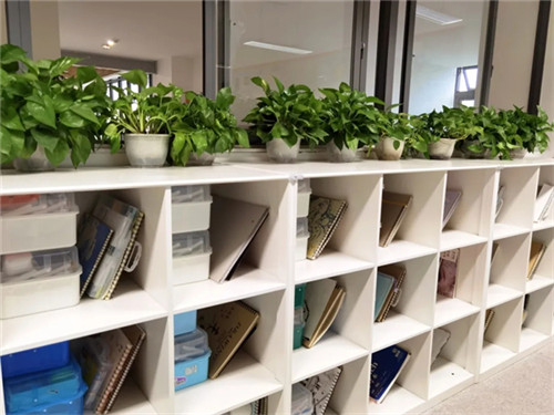 外墙如流动的画布,主题小报随月更新,节气民俗、学科知识皆成风景。绿萝垂帘,多肉缀玉,“雅”意沁人心脾。
