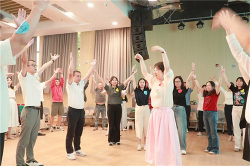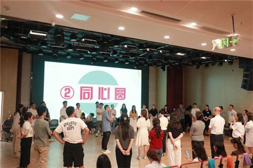在专家老师的引领下,学校教师与参培同仁通过互动环节打破隔阂。老师们围坐成圈,中心者分享自我,有共鸣的同仁上前击掌,既拉近距离,更让大家领悟寻找学生共鸣点的重要性;同心圆活动中,众人手拉手协作完成任务,深刻体会到学校各部门、教师需如同心圆般紧密配合,才能搭建学生心理支持网络。随后的区域测试模拟校园场景,引导分析学生心理与应对策略;社会测试聚焦社会环境影响,进一步拓宽心育视野,让老师们直观感受心育工作的复杂多样。