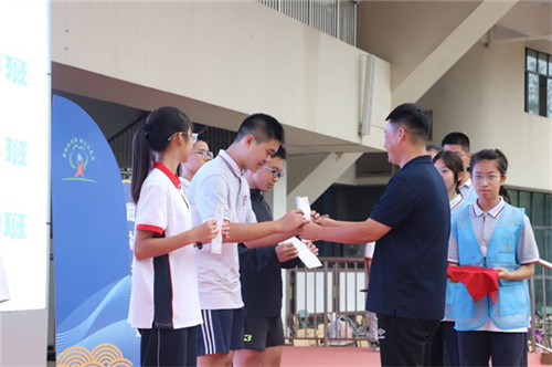 学校领导为各获奖班级代表颁发了奖状,并向他们表示祝贺。