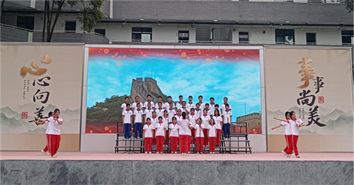 为庆祝中华人民共和国成立76周年,2025年9月30日下午,成都市青羊区综合高级中学(以下简称“青羊综合高中”)校园内歌声飞扬、红旗漫卷,“逐光而行承党恩,红歌嘹亮致青春”主题红歌合唱比赛顺利举行。全校师生与学生家长欢聚一堂,以青春之声传递爱国情怀,用铿锵旋律致敬伟大时代。