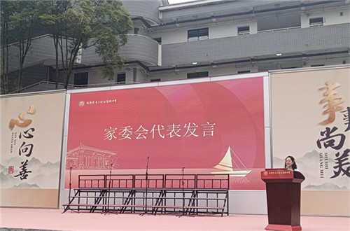 党雷为家委会成员颁发聘书。校级家委会主任、高一(1)班周焕然同学家长代表家委会发言,表示将与学校携手“陪伴孩子成长”,多一份理解与配合,少一份顾虑与观望,共同见证孩子从懵懂走向成熟,成长为眼里有光、心中有梦、脚下有路的新时代青年。