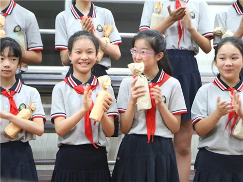 音乐会上半场尾声,举行了芳草合唱团2019级荣誉团员毕业典礼。学工部主任杜芸芸宣读了31名荣誉团员名单,玉林中学副校长谭强、芳草小学副校长陈婷婷和副校长李娜为他们颁发了纪念礼物。荣誉团员代表黎洛佩、李安宸、甘胤佑发表了感言,表达了对合唱团和老师的深厚感情。合唱团指挥史力老师也为毕业生们送上了深情的毕业赠言。