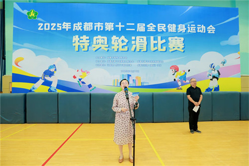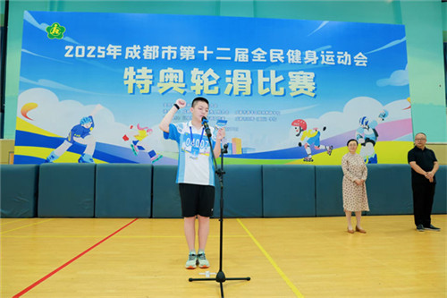 青羊区残疾人联合会理事长陈船庄严致辞,紧接着,在热烈的掌声中,成都市残疾人联合会三级调研员周兰郑重宣布:“2025年成都市全民健身运动会特奥轮滑比赛,现在开始!”这一刻,全场沸腾!青羊区特殊教育学校党支部书记、校长卞蓉与来自全市各区县的运动员、教练员、志愿者及家属代表共计350余人,共同见证了这一激动人心的时刻。