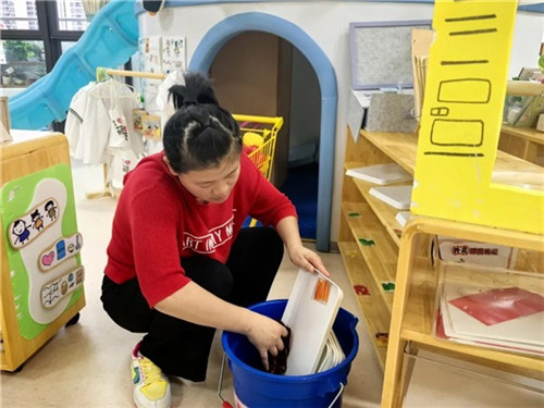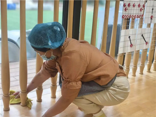 各班保育老师化身“卫生守护者”,聚焦班级内幼儿高频接触的物品,对桌椅、床铺、游戏材料等进行全方位清洗与消毒,确保无卫生死角。清洁后,老师们还对班级物品进行有序摆放,让教室环境既整洁又规整,切实为孩子们打造健康、舒适的“班级小家”。