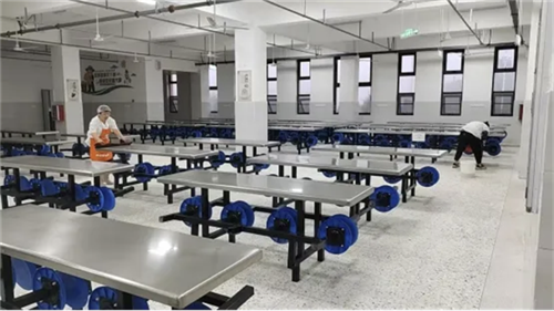活动中,工人们分工明确、协作高效。从操作间的灶台、蒸箱、切菜台,到就餐区的餐桌、座椅、地面,再到储物间的食材架、调料柜,均采用“先清理、后消毒”的流程,重点清除油污、积尘和卫生死角。