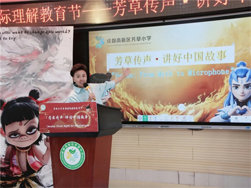 4月15日,成都高新区芳草小学首届国际理解教育节“芳草传声·讲好中国故事——Nezha:From Myth to Microphone”活动盛大开启,师生齐聚一堂,以哪吒为主角,通过“Bilingual Storytelling”创新实践,在国际理解教育框架下完成中国传统神话的当代性阐释与全球性表达。