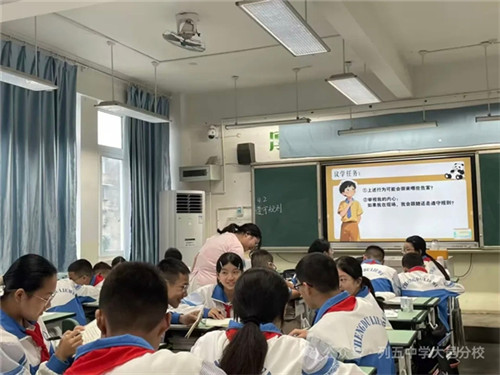 活动伊始,大邑县官渡中学张煜琳老师在大邑县实验中学八年级8班呈现了《遵守规则》精彩公开课。课程以“守护大熊猫”为总议题,通过“观象-评象-治象”的递进设计,引导学生于情境中思辨,在活动中内化规则意识,充分展现了活动型课程的魅力。
