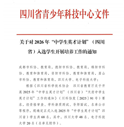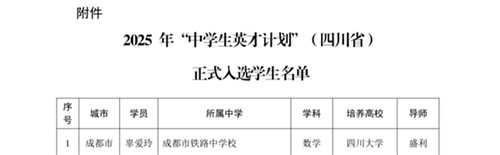 祝贺!成都铁中三名学子入选2025年“中学生英才计划”