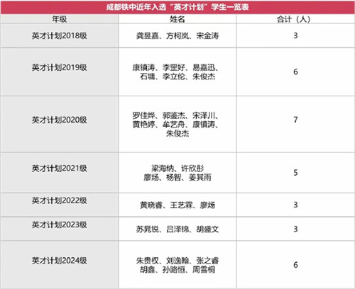 此次3位学子入选2025年“英才计划”,并非偶然,而是成都铁中依托课程优势,将“立人”课程与“英才计划”深度融合的长效成果。学校将“英才计划”与工程类课程深度绑定,建设“卓越工程人才”课程序列,2021年获“英才计划优秀组织实施单位”,2024年多名学子入选国家及省级计划,孙路恒跻身化学学科全国交流(全省仅3人);过往更培育出复旦大学易嘉迅、哈工大廖炀等顶尖高校学子。