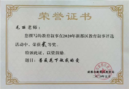 2024年,毛丽获评成都市龙泉驿区“教坛新秀”,这份荣誉不仅是对个人成长的肯定,更是对其师生共赴教育之旅理念的最佳诠释。