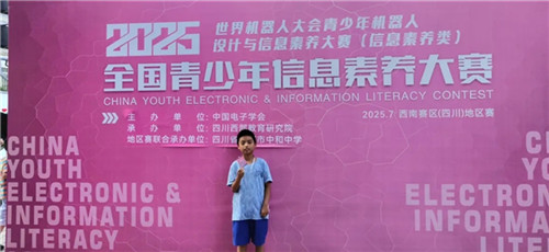 在全国青少年信息素养大赛西南赛区无人飞行主题赛中,潘鹏丞积极学习无人飞行原理、编程控制等专业知识。在备赛过程中,他经历了无数次的模拟飞行失败,但始终没有放弃,不断调整参数、优化程序,最终获得小学组西南赛区三等奖。