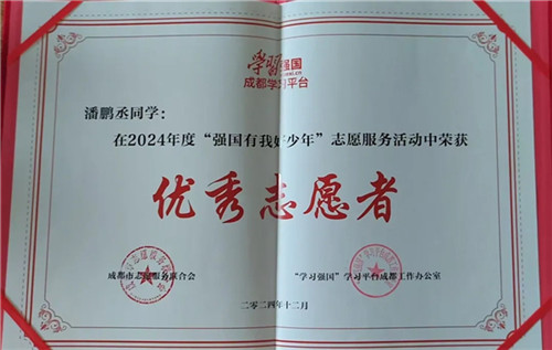 此外,他还成为“学习强国”小志愿者,经考核后在多场馆脱稿讲解,最终获得2024年“优秀小讲解员志愿者”,在志愿行动中培养出坚持的韧劲、责任的担当与共情的温柔。