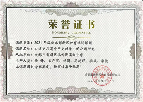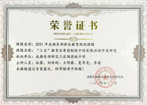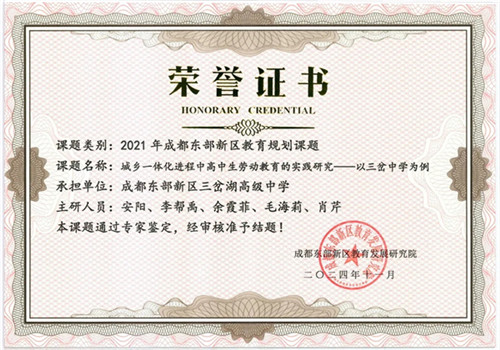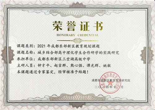 近日,成都市东部新区三岔湖高级中学喜讯频传,由学校承担的四项东部新区教育科学规划课题,经专家严格评审,成功通过结题鉴定。这四项课题研究内容广泛,涵盖了人文传承、学生启智、学科融合以及劳动实践育人等多个关键领域,不仅是学校近年来深耕教育教学实际、积极开展新区新课堂改革和“三主五学”高效课堂探索的深度检验,更为学校后续深化教育教学改革积累了宝贵而实用的经验。