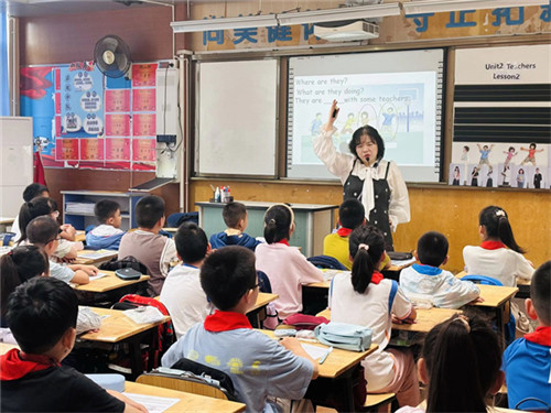 英语教研员走进了四节英语课堂。五年级两位老师针对五年级Unit 2 Teachers Lesson2进行了同课异构。付子芮老师的教学设计充分体现了英语学习活动观,通过多模态输入与输出的有机结合,有效培养了学生的语言能力,更通过TBLT任务教学法实现了在做中学英语。王聪颖老师围绕“Teachers”这一主题展开了扎实的词汇和句型教学,学生通过听、说、读、写和分角色表演对话,呈现核心语言在真实语境中的运用。
