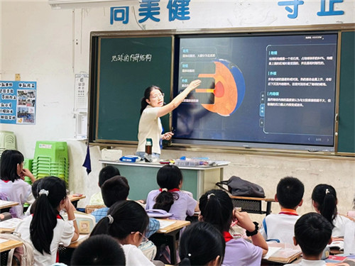 王琪聆听了两节科学课。其中,魏雨曦老师在《给植物画张“像”》一课中,引导一年级学生观察绿萝、吊兰等植物特点,进行科学绘画,提升学生观察能力。刘陈一帆老师在《地球的结构》一课中,通过视频、AR学习和用超轻粘土制作模型等方式,帮助学生认识地球内部圈层结构。课后,王琪肯定了两课导入生动,师生互动充分,很好地贯彻了科学学习的本质——学生自主发现的过程。同时,他建议:教学内容应突出典型特征,丰富学生体验;教学结构需逻辑清晰,知识逻辑和学生认知规律协调一致;教师引导需通过有效提问和意图明确的教学环节,确保教学服务于科学素养的培养。