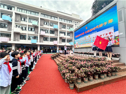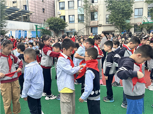 仪式上举行了新队员入队仪式。大队辅导员黎艺媛老师宣布名单后,四年级队员为新队员佩戴上鲜艳的红领巾。在领誓人刘俊珂队员的带领下,新队员庄严宣誓,老队员重温誓词,“为共产主义事业贡献力量”的誓言响彻校园。队员们还观看了《新时代好少年风采》视频,汲取榜样力量。