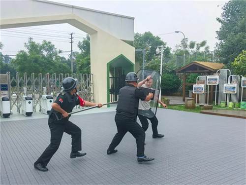 为提高保安人员和师幼的反恐防暴应急处置能力,有效防范校园暴恐事件的发生,2025年10月10日,成都市双流区黄甲幼儿园联合黄甲派出所和保安公司共同开展了反恐防暴应急演练。