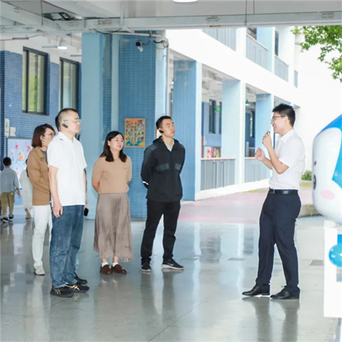 在副书记谢霜、副主任周科的陪伴下,校长团队缓缓步入天府七小的育人场域。一步一景,皆有深意;一墙一隅,皆蕴教育。从“儿童城市”的空间布局到“七悦少年”的文化象征,从学习社区的功能设计到学生作品的创意呈现,每一处场景都无声诉说着七小的育人理念。大家驻足细观,频频记录,沉浸于七小校园中将文化理念转化为真实体验的智慧设计之中。