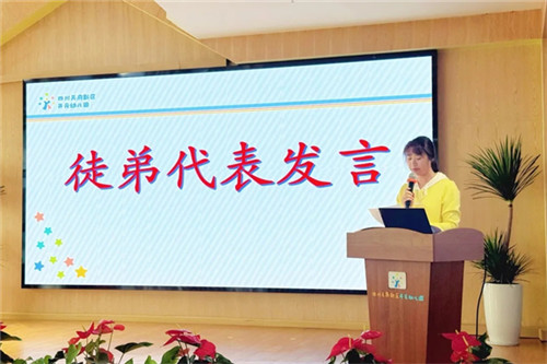 师父代表许新新老师发言时承诺,将以“传帮带”为己任,不仅在业务上为徒弟答疑解惑,更在师德上做好引领,助力徒弟稳步扎根幼教岗位。徒弟代表何唯老师则表态,将以谦逊态度主动学习,积极向师父请教,在实践中积累经验,努力成长为合格的幼教人。