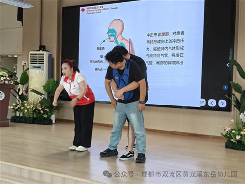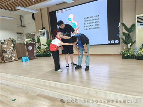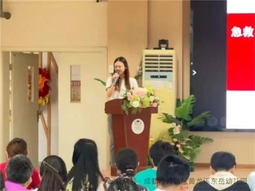 为切实提升家长们的应急救护能力,帮助家长掌握科学、有效的急救知识,黄龙溪东岳幼儿园特别策划并组织了一场实用的专题讲座。本次讲座特邀中国红十字会培训讲师施老师主讲,围绕“意外伤害处置”这一核心主题展开。讲座中,施老师结合真实案例,用通俗易懂的语言和生动直观的演示,围绕常见的急救场景展开讲解。从儿童异物卡喉的海姆立克急救法操作步骤,到烫伤的正确处理流程,再到突发晕厥时的初步判断与应对要点,施老师逐一拆解关键环节,并现场示范急救动作要领。
