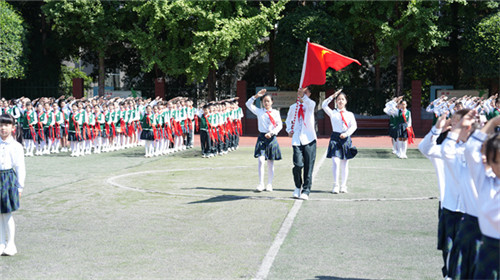 大队辅导员带领呼号,队员齐应“时刻准备着”。最后,奏《退旗歌》退旗敬礼,仪式结束,各班有序返回。