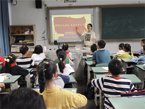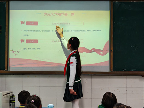 队前教育针对二年级预备队员开展启蒙教学。辅导员通过图文、视频、问答等形式,讲解少先队历史,阐释队旗“指引前进方向”、红领巾“系满理想、浸先烈热血”的意义;教唱《中国少年先锋队队歌》,纠正标准队礼,分享少年楷模事迹,帮助预备队员理解“时刻准备着”的誓言内涵,播下爱国、爱党种子。