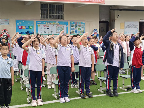 来自六年级1班的运动员荣浩辰代表坚定表态:在每一个运动项目中,全力以赴,超越自我,充分展现祝小新时代学子昂扬向上的精神风貌!