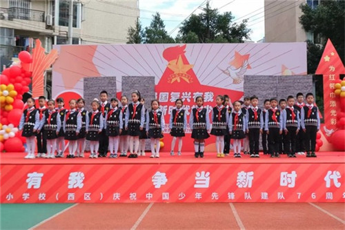 10月13日,成都市石笋街小学校(西区)举行庆祝中国少年先锋队建队76周年主题活动。三(7)中队以“强国复兴有我,争当新时代好少年”为主题承办此次活动。活动中,新一批同学光荣加入中国少年先锋队,在队旗下庄严宣誓,正式成为少先队员。现场通过多元形式传递红色精神,展现了全体少先队员的时代担当。