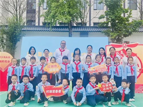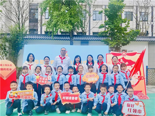 成都市浣花小学校党支部书记、少工委主任、校长袁伟向新队员提出了希望和要求,鼓励他们为共产主义事业而奋斗。