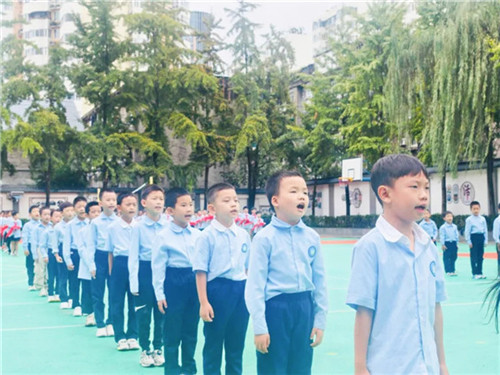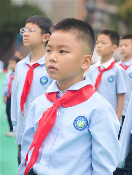 为教育引领广大少先队员争当爱党爱国、勤奋好学、全面发展的新时代好少年”的号召,10月11日,成都市浣花小学举行了“强国复兴有我,争当新时代好少年”主题队日活动。活动当天,80名学生齐聚操场,共同见证了这一庄严而神圣的时刻。伴随着激昂的《中国少年先锋队队歌》,仪式正式拉开帷幕。