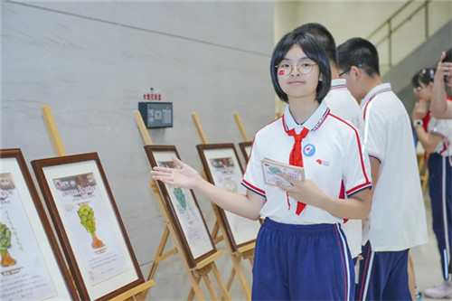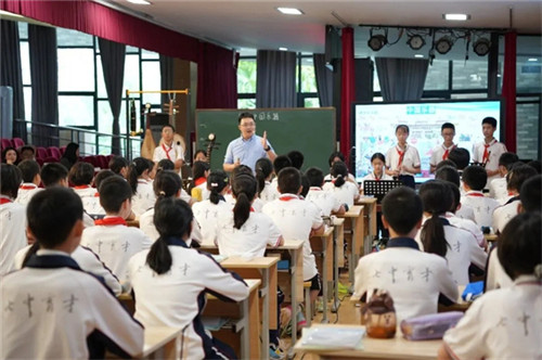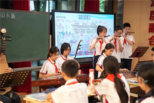 七中育才充分挖掘学科美育,拓宽美路径。“比如物理课与音乐、历史学科深度融合,让学生了解各类传统乐器的历史故事及发声原理。孩子们在课堂上能利用身边材料制作小乐器,既运用跨学科知识解决问题,又培养了创新精神和合作能力。”