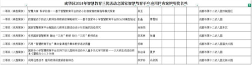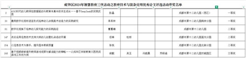 获奖名单包括成华区2024年智慧教育三优活动之国家智慧教育平台应用优秀案例、教育技术与装备应用优秀论文等多个类别。这些荣誉的获得,不仅是对成都十二幼智慧教育实践成果的认可,更是对国家智慧教育平台在学前教育领域“落地见效”的生动诠释。