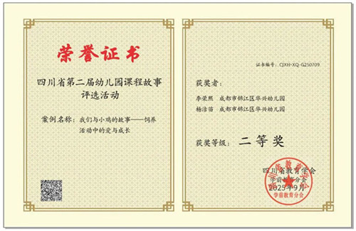 在近日落幕的“四川省第二届幼儿园课程故事评选活动”中,成都市锦江区华兴幼儿园的老师们怀揣教育热忱,以专业为笔、以童心为墨,将幼儿园日常的细碎美好凝练成动人故事,从众多参赛课程故事中崭露头角,一举摘得省级一等奖一个、二等奖一个以及三等奖两个。