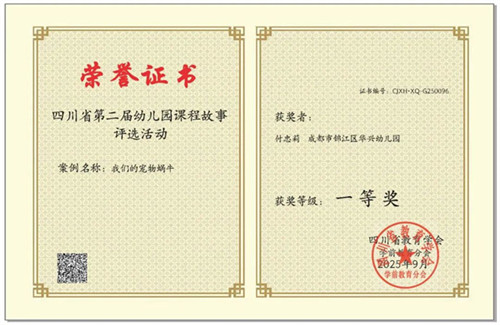 摘要:在近日落幕的“四川省第二届幼儿园课程故事评选活动”中,成都市锦江区华兴幼儿园的老师们怀揣教育热忱,以专业为笔、以童心为墨,将幼儿园日常的细碎美好凝练成动人故事,从众多参赛课程故事中崭露头角,一举摘得省级一等奖一个、二等奖一个以及三等奖两个。