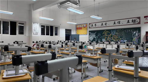晨光初染,初一年级的教室里书声琅琅。整齐的课桌椅,统一的校服,专注的神情,构成了一道亮丽的校园风景线。