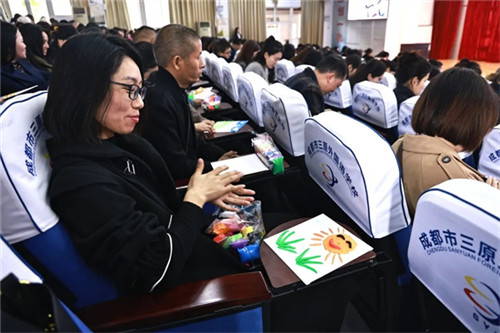 在观看完同学们青春洋溢的跑操活动后,家长们来到了阶梯教室,参加一场独特的情绪艺术体验之旅。通过用双手去揉捏、塑造黏土,将感情和思绪转化为有形的艺术品。黏土联结着情绪,也联结了和孩子们相处的点点滴滴。
