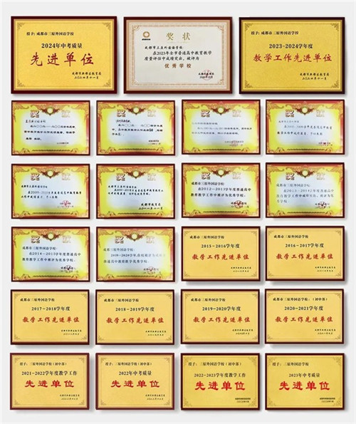 2024年学校作为成都市高中阶段“学生整体进步明显(以入量出)”的突出学校,得到市区教育主管部门的高度肯定,并受邀交流分享办学经验。