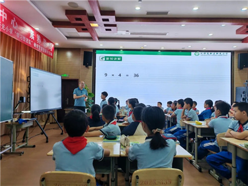 行政办副主任廖震波执教的五年级《因数与倍数》,从常见的方阵队列问题切入,巧妙关联数学概念。课堂中,老师循循善诱,设计了一系列由浅入深的互动环节,鼓励学生自主探究、合作交流。通过引导学生对不同解题方法进行比较与分析,培养学生多角度思考问题的能力,并鼓励大胆质疑,勇于表达,在思维的碰撞中有效培育了学生的数学素养与思辨精神。