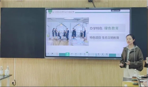 汇报反馈环节,教务中心主任王潇迎代表学校做教研培工作交流,重点对学校落实国家课程校本化工作、学校绿色课堂建设工作做了介绍。