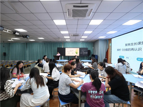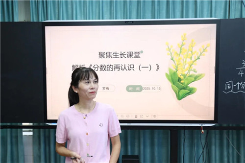2025年10月15日上午,四川天府新区广都学校&南湖小学数学教研组在会议室开展“四环进阶”生长课堂研讨活动。从《分数的再认识(一)》的课堂展示,到《聚焦生长课堂》案例解析,再到《四环进阶生长课堂》的主题分享,为老师们带来教学新思路。