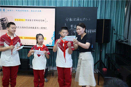 胡静老师执教《分数的再认识(一)》:让抽象概念“看得见、摸得着”。