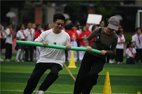 展示操整齐划一,跳短绳节奏带感,老师们还上演了超萌“袋鼠夹球跳”,蹦蹦跳跳的样子逗得孩子们笑声不断,这样的老师,谁不爱呀!
